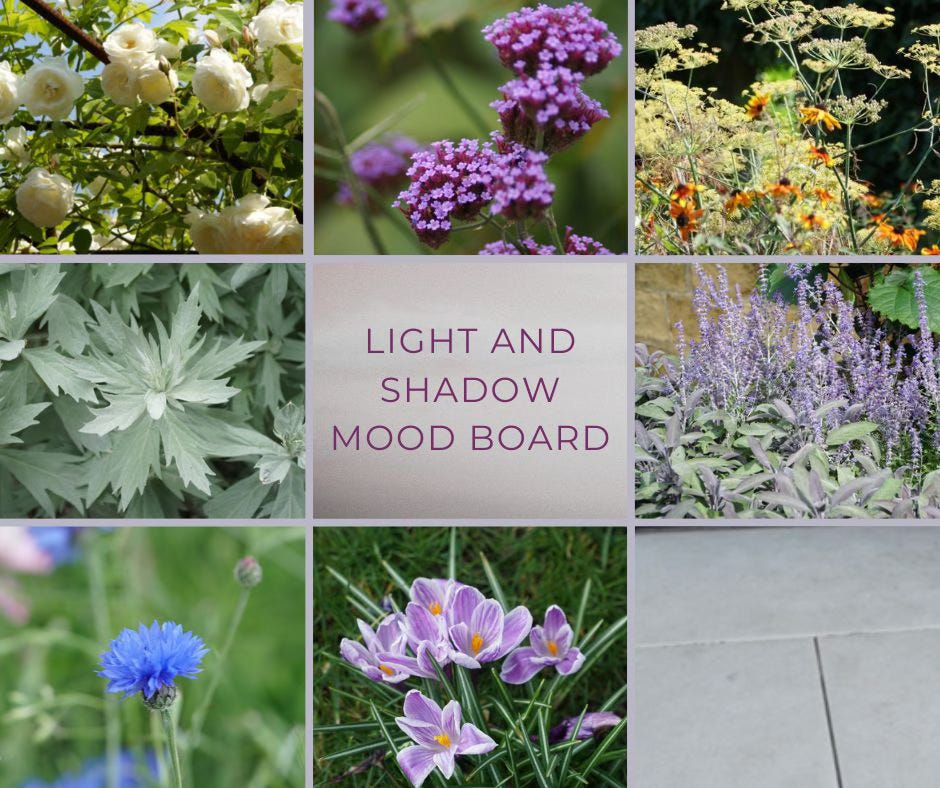 The first of the palettes, and probably my favourite is Light and Shadow. Partly due to the name, light and shadow is something I look for in any garden. Where will the sun be in the evening to sit out and enjoy a glass of wine, or where will the shade be to eat lunch in the midday heat. A chance to see or create a patch of dappled shade, watching the sun filter through the leaves, lighting up pockets of the garden while highlighting the shaded areas.